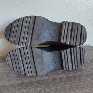 Zara Goth Grunge Biker Moto Front Zip Knit Sock Combat Boots Black Size Women's 9 EU 40 Chunky Lug Sole