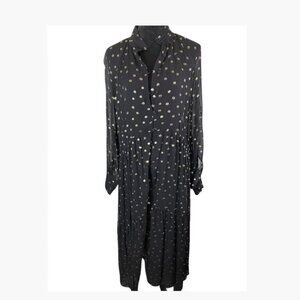 Zara Front-Button Gauze-y Shirtdress with Metallic Accents Size Medium EUC