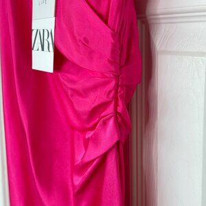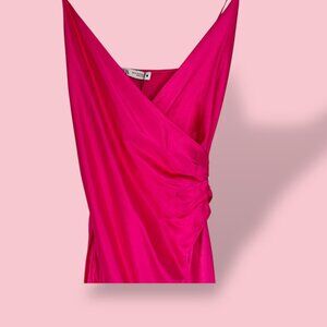 Elegant fuchsia midi dress. Sleeveless design. Perfect for any occasion.