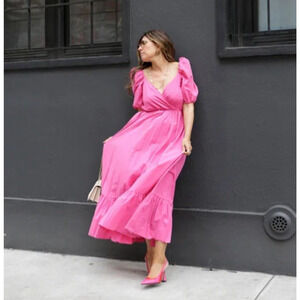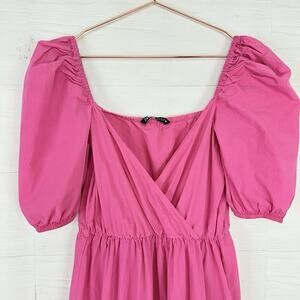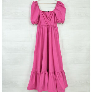 Zara Fuchsia Pink Puff Sleeve Tiered Midi Dress Small Bloggers Fave Cottagecore