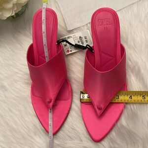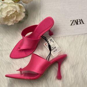 Zara New With Tags Fuchsia Pink Satin Effect High Heels Pointed Toe Dress Sandals Shoes, nwt.