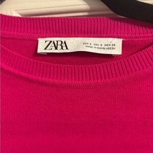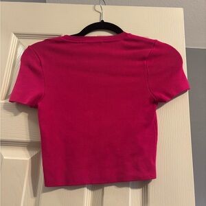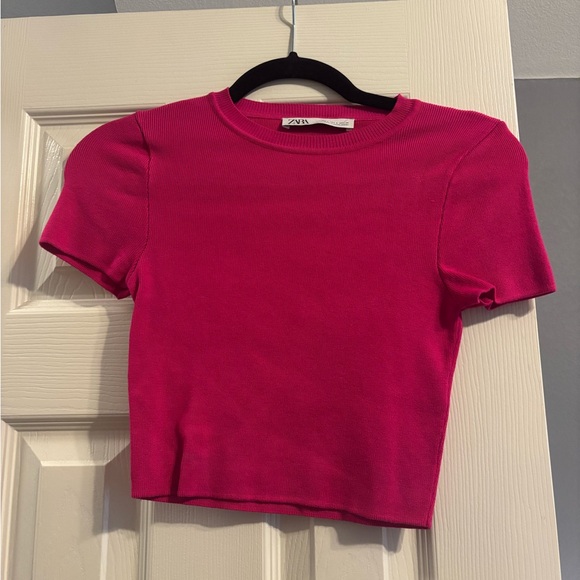 Vibrant fuchsia top by Zara. Features ribbed texture and short sleeves.