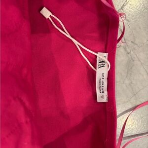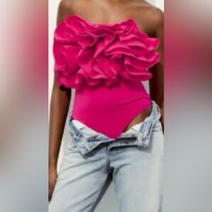 Bold fuchsia bodysuit with elegant ruffles. Perfect for a chic look. Never worn in perfect condition
