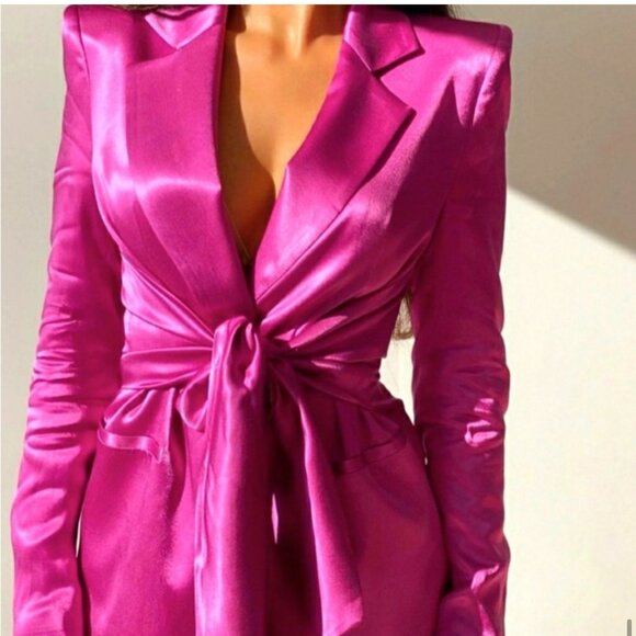 Gorgeous satiny blazer. Size Medium. Barely worn, has one slight mark - see photos. Not noticeable since the tie covers it.