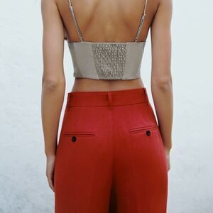 Zara Full Length Pants Linen Blend New