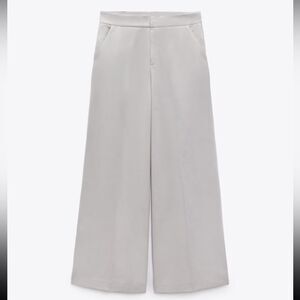 High-waisted pants. Side pockets and back false welt pockets. Front zip, hook and inside button closure.