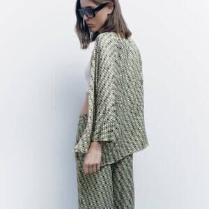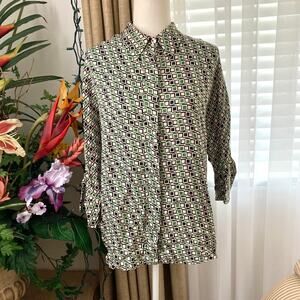 NWT Zara GEOMETRIC SQUARES PRINT SHIRT in Cream/Green/Black