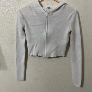 Garage Croppedd White Long Sleeve Hoodie Size Small