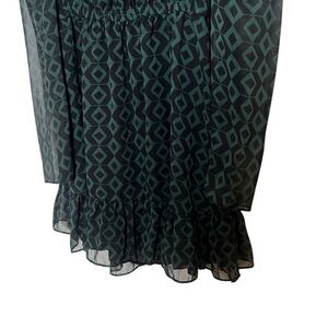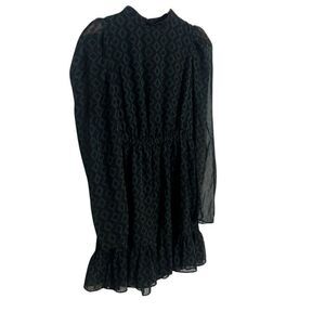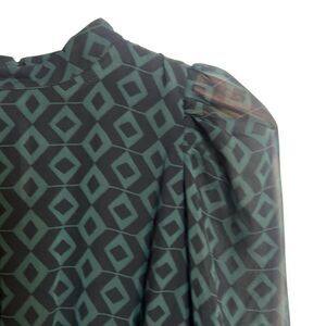 Zara Geometric Mock Neck Sheer Long Sleeve Mini Dress Green Black Size Small