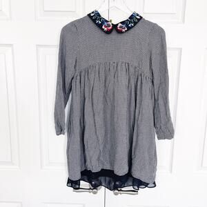 Zara Gingham Babydoll Dress with Embroidered Peter Pan Collar