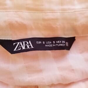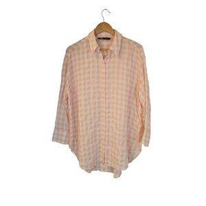Zara Gingham Button Up Top Size Small Pink Semi Sheer Preppy Feminine Casual