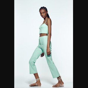 Zara Gingham Corset Bustier Top M Plaid Hook Spring Summer Blogger Fav Mint Trip