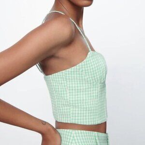 Zara Gingham Plaid Corset Bustier Top. Size M