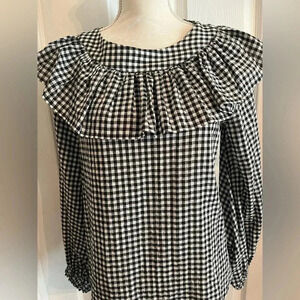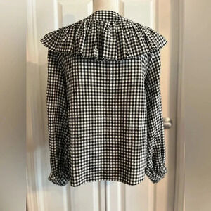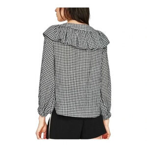 Zara Gingham printed Ruffled black/ white Blouse size S