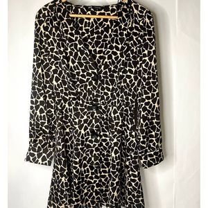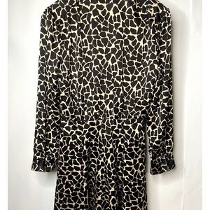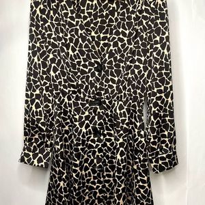 Zara Giraffe Brown Animal Print V-Neck Long Sleeve Button Up Mini Dress