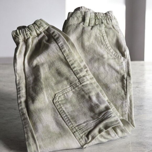 Zara - Girl's 11/12 Denim Cargo Joggers, Green & Cream Tie Dye, Pre-owned