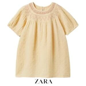 Zara Girls 3-4 Years Dress Textured Embroidered Short Sleeve Yellow New NWT