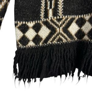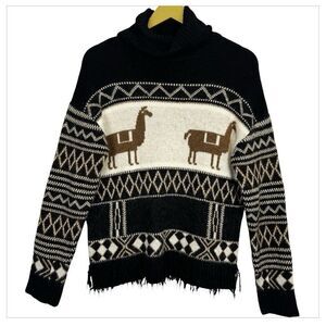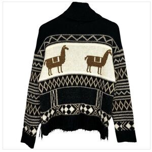 Zara Girls Alpaca Llama Western Print Cowl Neck Knit Sweater Fringed 13-14 Years