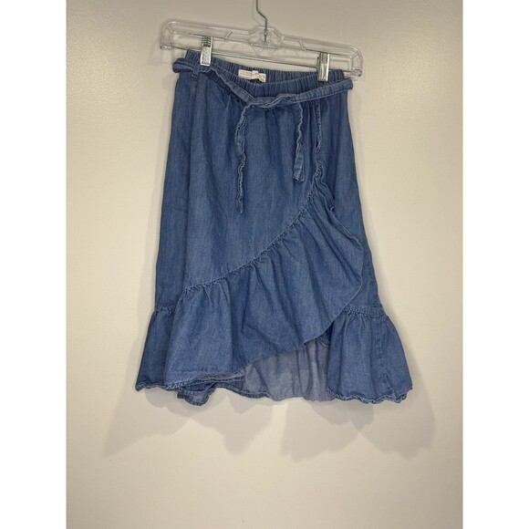 Zara Girls Blue Denim Skirt with Belt 11/12 Trendy Boho Causal Flare Cottagecore