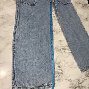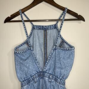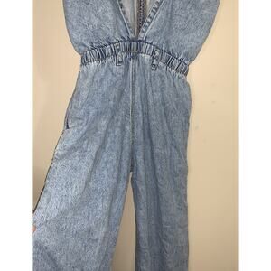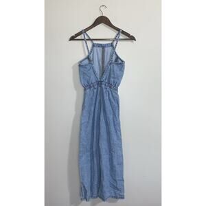 Zara Girls Denim Dungaree Jumpsuit Wide Leg Pockets Open Back Size 9
