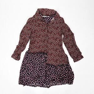 Zara Girls long-sleeve dress in size 7 features contrasting red and navy micro-floral prints for a playful mixed pattern look.
