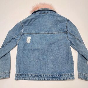 Zara Girls - Size 11/12 Sequin Fur Collar Distressed Jean Jacket