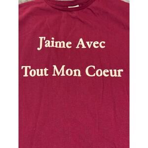 Zara Girls Size 13/14 Maroon Red Long Sleeve Shirt Causal Crew Neck French Love Lightweight J’aime Avec
