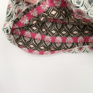 This Zara Girls mini A-line skirt features a beautiful pink and off-white floral embroidered tapestry design. A chic and stylish piece, perfect for any occasion. Size 13/14, new without tags, with a minor unstitched area inside (see photo).