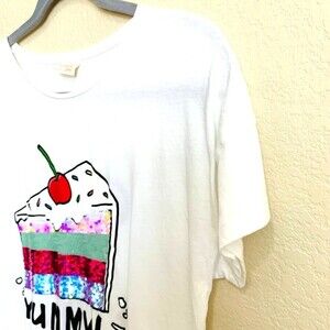 Pre-Loved Zara Girls White tee sequins slice of cake yummy top size 13/14