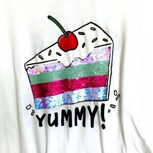 Zara Girls White tee sequins slice of cake yummy top size 13/14