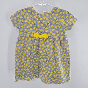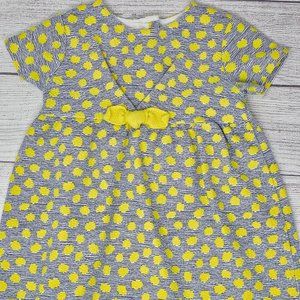 Zara Blue and White Jacquard Dress with Bright Yellow Large Polka Dots. Yellow bow in the center. Short sleeves. Has stretch. Keyhole button in back. Size 18-24 months Months. In great condition. No holes or stains