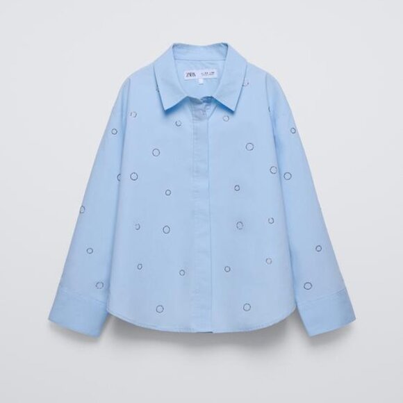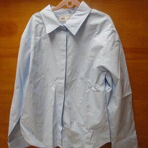 Zara Girls light Blue RHINESTONE SHIRT New 13-14