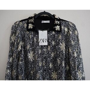 Zara Girl's Sz 11-12 Black/Gold Embellished Velvet Button Down Party Dress