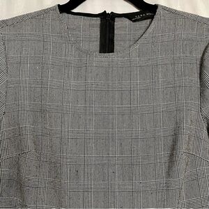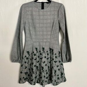 Zara Glenn Plaid Print Long Sleeve Floral Embroidered Skater Dress