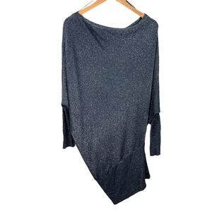 Zara Glitter Dress Silver Gray Dolman Sleeve Asymmetrical Sheath M Medium Sparkly