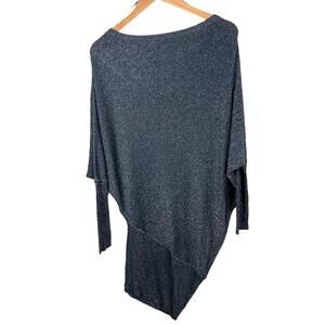Zara Glitter Dress Silver Gray Dolman Sleeve Asymmetrical Sheath M Sparkly
