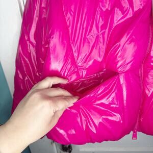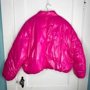 Zara Glossy Shiny Vinyl Puffer Jacket Hot Pink High Neck NEW Size Large L Baddie