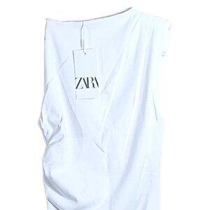 Zara Goddess Tank Womens Medium White Ruched Asymmetric Shoulder Grecian Summer