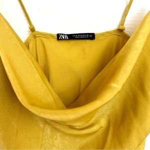 Zara Gold Cowl Neck Satin Dress w/ Side Slit Medium
