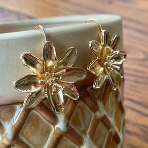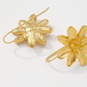 Zara Gold Flower Drop Dangle Simple Statement Hook Style Earring