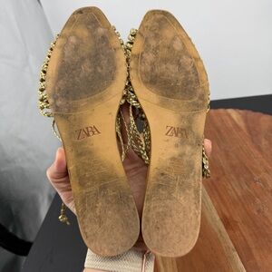 Zara Gold Gladiator Sandals braided straps sz 40 US 9.5 ankle tie