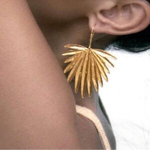 Zara Gold Palm Leaf Lightweight Drop Earrings