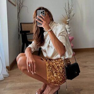 Zara Gold Sequin Mini Skirt Medium NWT $70