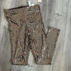 Shimmering gold sequin leggings. Perfect for special occasions. Comfortable and stylish. Perfect for the holidays and new years/Christmas! You will stand out in these gorgeous leggings!! Never worn and super chic smoke free pet free home