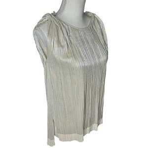 Zara Gold Sleeveless Slinky Tank Shirt Top High Low Rouched Shoulder Size Small