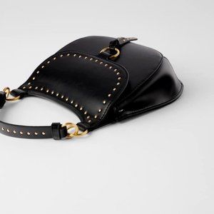 Zara Mini Gold Studded Saddle Crossbody Handbag