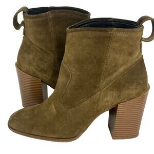Zara Golden Brown Suede Leather Stacked Heel Pull On Booties