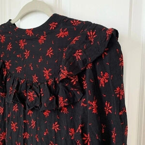 Zara Goth Cottage Core Witchy ruffle dress black red XSmall Fairy Whimsy
