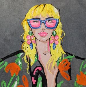 Zara Graphic Print Gray Crew Neck Sweatshirt Size Medium