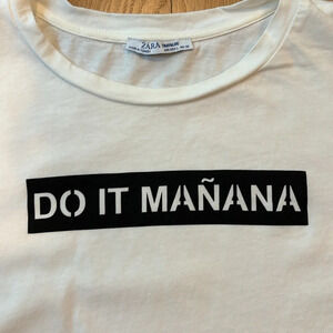 Zara Graphic Tee Cropped “Do it Mañana” Shirt Size Large